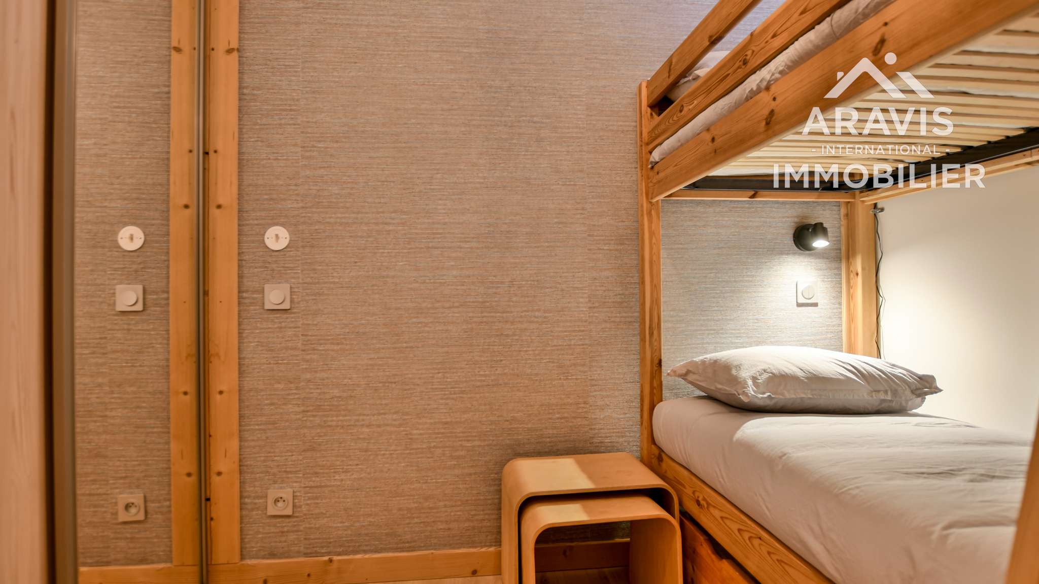 Perfect for a mountain stay with family or friends, it features a double bedroom with balcony access, and a cosy windowless cabin bedroom with a bunk bed ideal for children or teenagers.